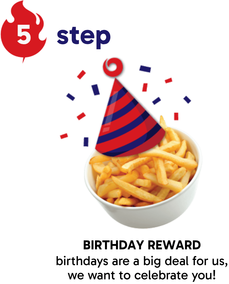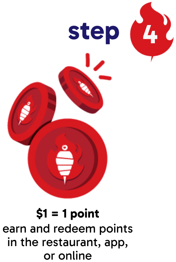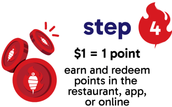 For every $1 spent through the app or online, you’ll earn 1 point. Collect 500 points for $10, 750 points for $15, and 250 points for $5. Plus, enjoy birthday rewards, exclusive offers, and other fun ways to use your points!